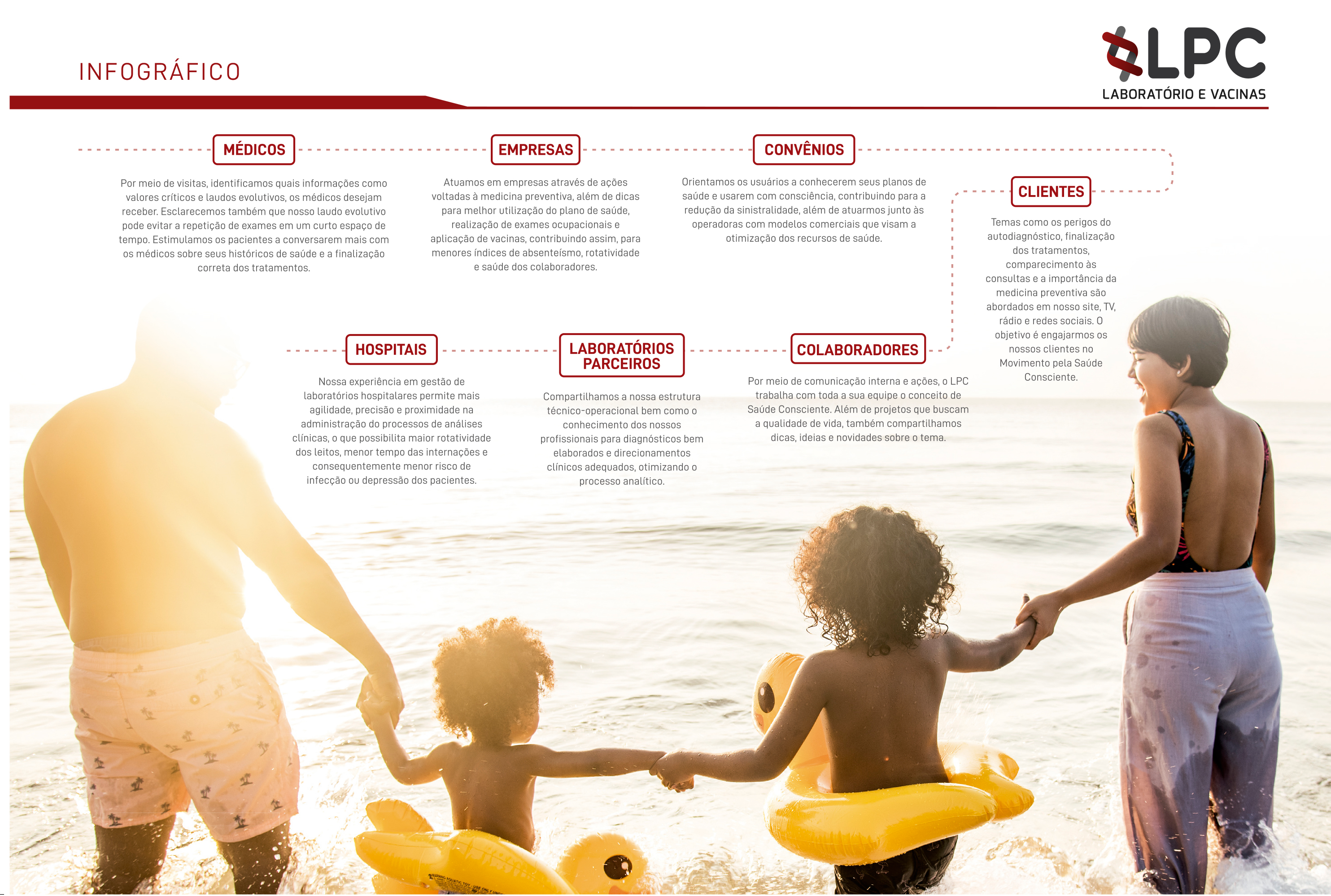 A verdadeira essência do Laboratório LPC é contribuir com a sustentabilidade do sistema de saúde, e para isso, atuamos com as partes interessadas nos nossos serviços fomentando a utilização consciente dos recursos de saúde, permitindo assim, que os diversos públicos sejam protagonistas na defesa da medicina preventiva e no melhor uso do sistema.